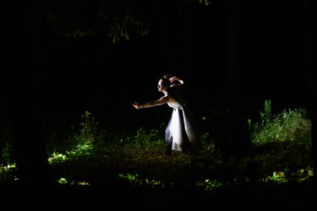 Posledním reprezentantem slovenské divadelní scény na festivalu byla Debris Company, s níž jsme se vydali do sféry experimentálního divadla v site-specific jednohubce s názvem Crescendo. Akt zrození se odehrával v bývalých kasárnách na Martinskom vrchu. Performerka v podobě stvoření odpovídajícímu znepokojivé kafkovské estetice, se prodírala do života, aby zkrásněla a pozvolným crescendem dosáhla vrcholu - smrti. Dílo je postaveno především na poutavé přírodní vizualitě a mystické atmosféře (ostře bílé světlo vymezující limitovaný prostor vytváří silně barokní kontrast s nočním lesem). Tato černobílá kombinace odkazuje i k tematické dichotomii života a smrti, která se prolíná celým dílem. Ačkoliv šlo o působivou podívanou s nápaditým využitím neobvyklých prostor, prožitek z ní odezněl stejně rychle jako samotná inscenace.