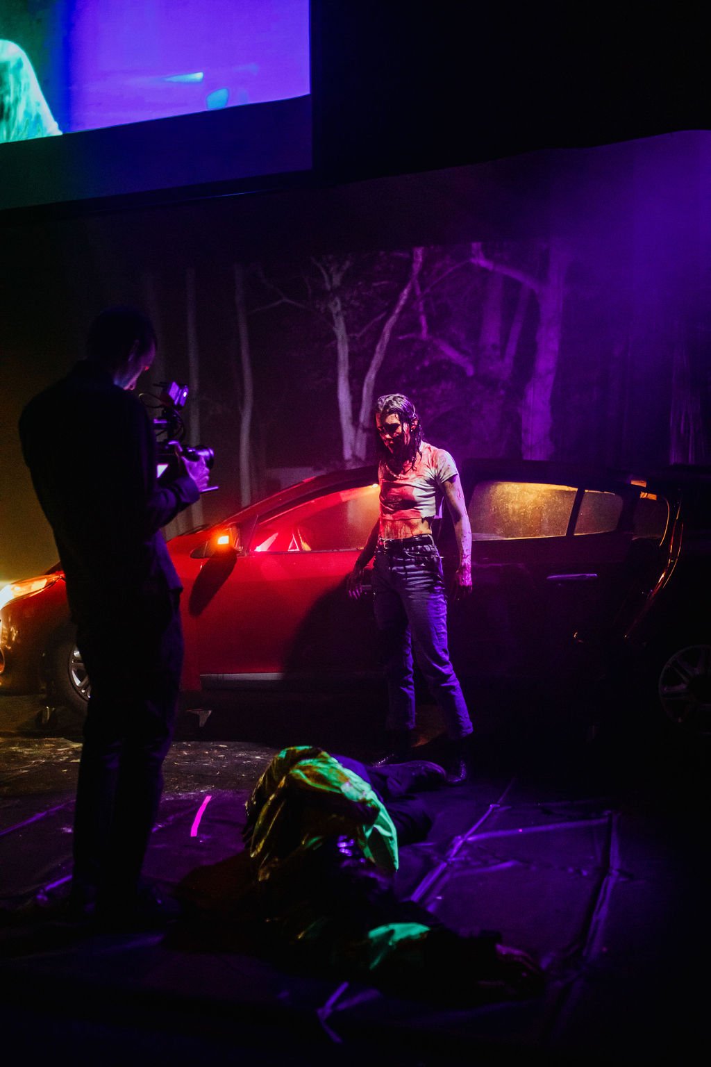 Ve svém nejnovějším projektu veškeré prvky vyzkoušené na výše uvedeném semináři propojili a ukázali, že i bez závratných filmových rozpočtů lze na scéně realizovat neobyčejné. Triky jsou tu v rámci live cinema předváděny zcela otevřeně s možností nahlédnout do „dílny tvůrců“. Důležitá je především fantazie, důkladná znalost materiálu (v tomto případě brakové literatury a filmu), smysl pro hračičkářství a obrovské osobní nasazení. Před očima diváků tedy v malém blackboxu vzniká „masakrózní“ podívaná, natolik přepísknutá ve využití dvou druhů falešné krve, že to ani útlocitné autorce tohoto textu nemohlo vadit. Už od počátku bude většina diváků patrně řešit, jak se po strmých a poměrně úzkých schodech do prvního patra NoD podařilo dostat reálný červený Renault Megane a jak asi probíhalo zkoušení, aby vše fungovalo tak, jak má (postavy jsou sledovány ve filmových detailech – natáčeny na dvě ruční kamery – a dabovány). Nechybí ani symfonický doprovod v zastoupení pouze jediného živého hudebníka (JosefŤupa). Celá ta podívaná, zviditelňující mnohaleté spolužití normálních lidí s upíry, kteří nechtějí ubližovat živým, ale bez své denní dávky krve se neobejdou, je vtipnou sbírkou nahromaděných klišé z akčních krváků, v níž nacházejí místo nelogické zvraty, bizarní dialogy, náznaky rodinných dojáků (policajt vyprávějící dcerce do telefonu příběh na dobrou noc), ale i nutné prvky podle dnešních hollywoodských pravidel (motiv LGBTIQ+) či edukativně laděný vzkaz na závěr.