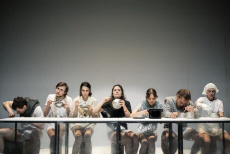 Na počátku příběhu Ropysledujeme rodinu na odlehlé farmě kdeis v Utahu. Foto Dan KvapilHra Ropa je bezpochyby velkou výzvou, s níž by měli co dělat i zkušení profesionálové. Ella Hickson totiž s oblibou porušuje rozmanitá pravidla dramatických textů, a tím nabízí velký prostor pro interpretaci. Ovšem při nedostatečném pochopení příběhu a skoků v čase, stejně jako odkazů na nejrůznější období a kauzy ze světové historie se může z inscenace stát nesrozumitelný blábol. V tomto případě se ovšem podařilo velmi dovedně skloubit příběhovou linku s atraktivními scénickými prostředky, takže dlouhý a spletitý příběh táhnoucí se od 19. do 21. století divák sleduje jako napínavou dobrodružnou pouť staletími, a teprve postupně odhaluje kdo je kdo v této spleti postav.
