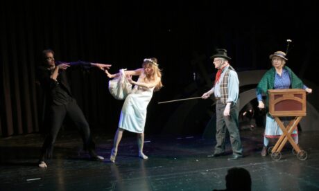 FOTO Divadlo SemaforSemafor je chudobné divadlo, inscenace se odehrává ve velmi skromné výpravě, a přitom usiluje přiblížit se k hudebnímu divadlu broadwayského slohu. Režisér se scénografem udělali z nouze ctnost. Téměř prázdné jeviště v krátkých sekvencích zaplňuje početný zpívající sbor, který vytváří iluzi velkolepé podívané, z nichž podle potřeby vystupují sólisté. Superstar představení je Lucie Černíková jako roztomile rozjívená naivní Dornička ve Zlatém kolovratu a Michal Stejskal v úloze Krále v téže baladě, klusající po jevišti s dětským koníkem s hlavou na tyčce baví publikum spontánním insitním herectvím; je to jeho vůbec nejvýraznější role, kterou kdy v Semaforu hrál. Magnetem předcházející Svatební košile je Umrlec Igora Šeby, který jako by vypadl z nějakého béčkového hollywoodského hororu. A další výraznou postavou inscenace je směšně monstrózní Polednice Lukáše Kunsta ve stejnojmenné baladě, stylizované jako poněkud drastický kabaretní výstup. Devizou představení je také přirozenost a energie všech vesměs mladých zpěvaček a zpěváků, kteří se pohybují po jevišti jako kdyby byli doma.
