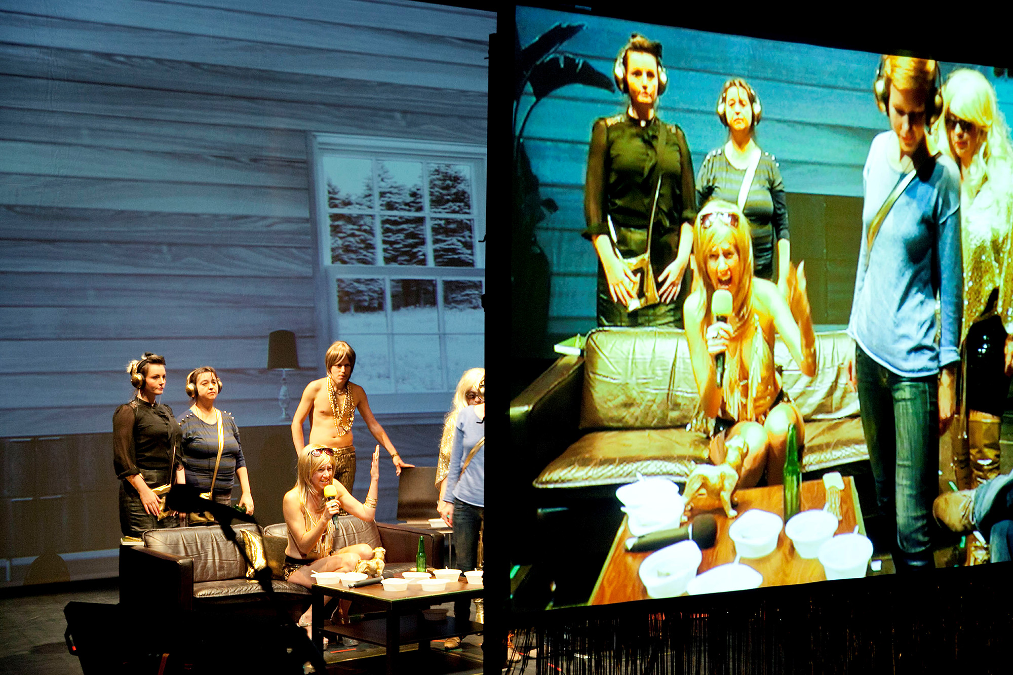 Základní dramaturgická situace inscenace je překvapivě prostá: na scéně se rekonstruuje amatérské domácí video pocházející z jakési oslavy narozenin jedné velké kalifornské rodiny, která jí dort a zpívá karaoke.